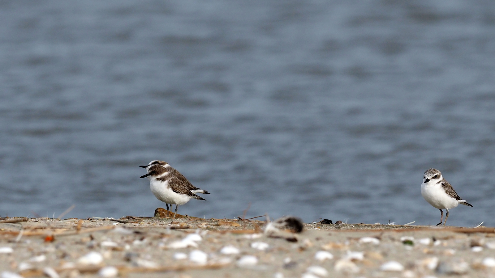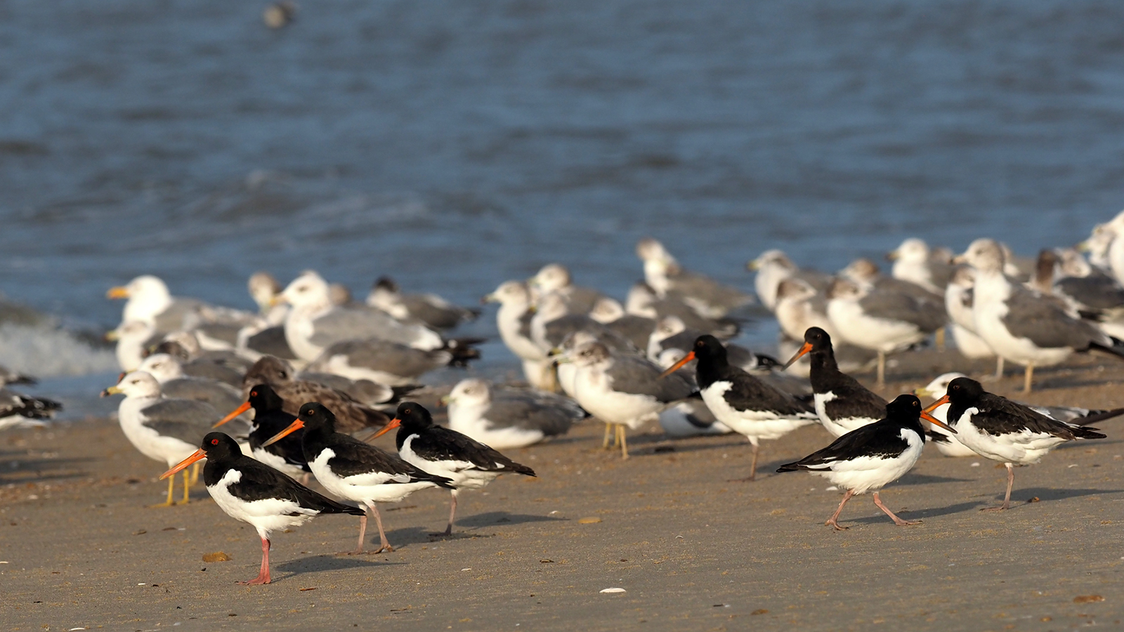 이들과 갈매기 무리 사이에 작은 도요 무리가 보이는데 붉은어깨도요들이다. 큰 새들 틈에 있어 작아 보이지만 결코 작지 않은 녀석들이다.