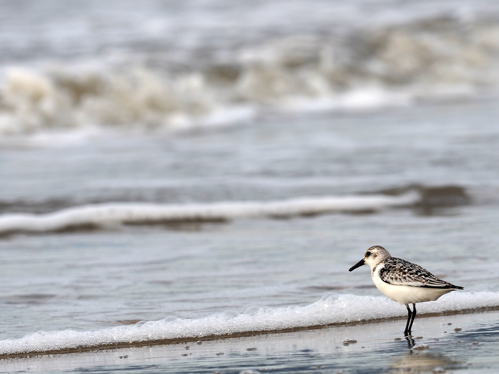 상념에 젖은 세가락도요가 쉼 없이 밀려오는 파도를 바라보고 있다.
