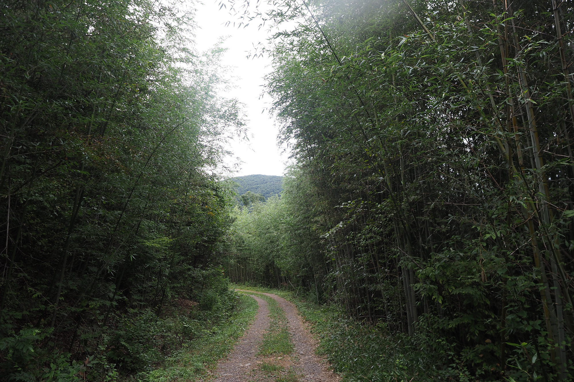 여기는 담양, 대나무가 임도를 넘어 산을 침범하고 있다.
