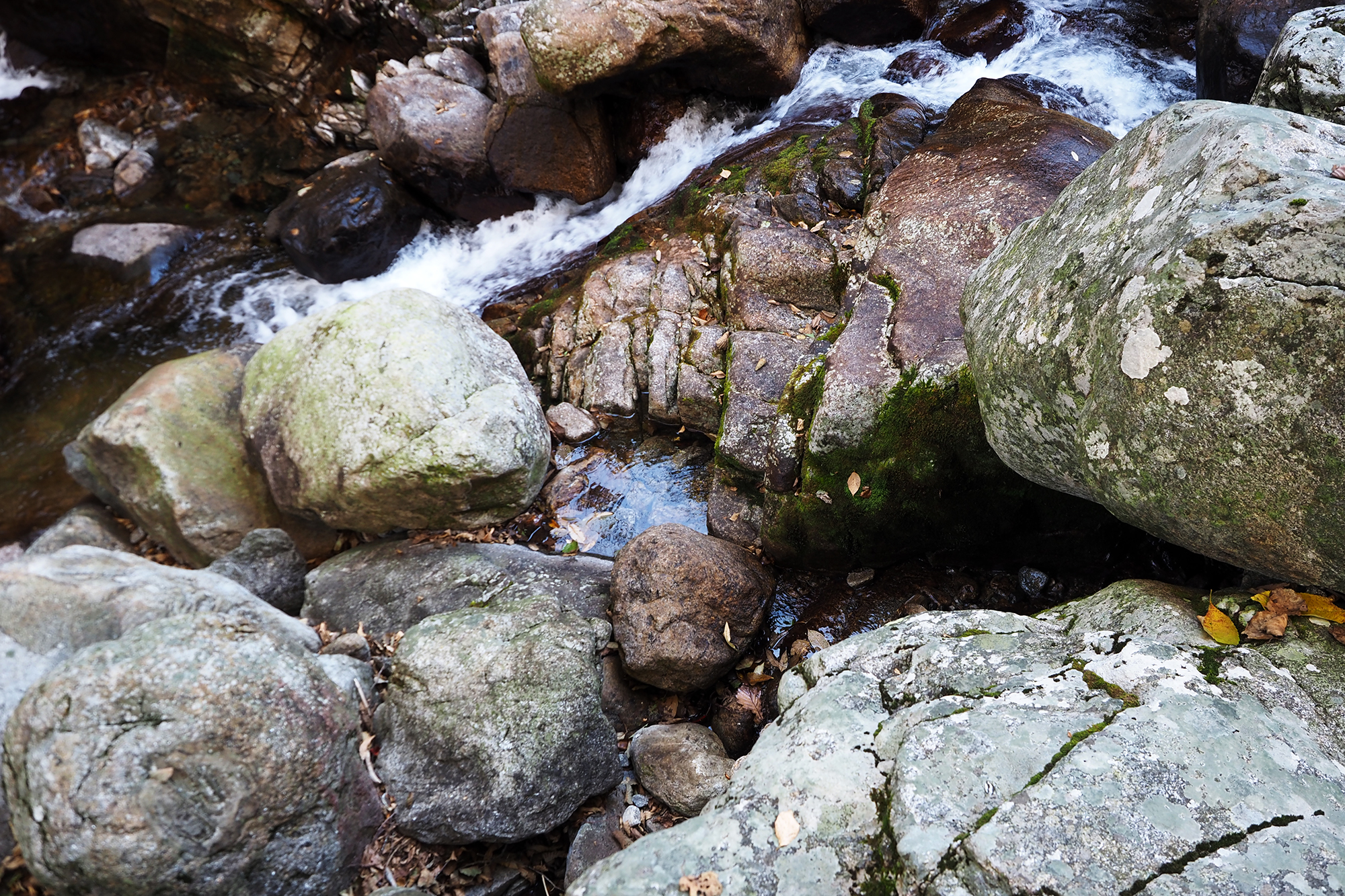 큰얼음쐐기골에서 내려온 물이 뱀사골과 합수되기 직전 폭포로 떨어진다.